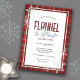 Este caloroso convite para festas de Festa Flannel e Frost apresenta uma acolhedora borda vermelha de padrão flanela acentuada com flocos de neve. Este design de convite pode ser usado para uma reunião de feriados para familiares e amigos ou para uma festa de Natal do escritório.