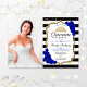 Quinceanera convite de festas com sua foto. Apresenta faixas brancas pretas, fonte de script, rosas azuis reais, tiara e confetti. Design azul branco-esbranquiçado de safira azul com ouro brilhante falso. Perfeito para uma celebração elegante.