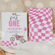 Convite de festas de primeiro aniversario de moto de saia rosa rápida Todos os designs são © PIXEL PERFECTION PARTY LTD