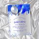 Um convite de aniversário 18º (ou qualquer idade). Na frente: um fundo falso prateado. Decorado com pingos de brilho azul-real, aparência pingando tinta e balões. Personalize e adicione um nome e detalhes da parte. O nome é escrito com um script de estilo manuscrito.