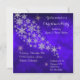 Este é um convite elegante para festas de férias, com imagens cintilantes em flocos de neve prateadas contra um rico fundo azul abstrato que quase brilha! Há muito espaço para seu texto personalizado em prata. Quebras de estrelas de ouro espalhadas dão mais brilho ao fundo. A parte de trás do convite tem o mesmo fundo abstrato azul. Festivo e bonito!