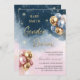 Um convite de festas de Revolução do Sexo do Bebê do balão. Em um fundo azul e cor-de-rosa do céu, muitos balões elegantes de ouro, rosa e azul são vistos flutuando ao lado do texto da tipografia dourada que lê Baby Your Surname Gender Reveal. Personalize editando o convite digital ou impresso com os detalhes do evento.