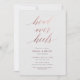 Convite de festa de noivado moderno e elegante com tipografia dourada rosa. Este convite também é adequado para festas de aniversário de casamento, anúncios de casamento, chás de noiva e ocasiões semelhantes.