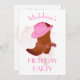 Um cowboy ou uma vaqueira rosa, convite de aniversário temido. Um chapéu cor-de-rosa com botas de vaqueiro. Altere as informações do seu próprio convite de aniversário pessoal personalizado.