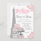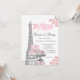 Convite de festa de aniversário de 16 anos Paris Sweet com bela Torre Eiffel prateada, elegantes pacotes de presentes de Paris, sapatos de salto alto com glitter prateado e elegante texto Paris em rosa em um fundo floral rosa rico. Este convite de aniversário de dezesseis anos de Paris é facilmente personalizado para o seu evento, basta adicionar seus detalhes no estilo de letra e cor, e texto de sua escolha. Este é um design impresso sem diamantes, jóias, lantejoulas, etc. reais.
