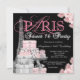 Convite de aniversário Paris Sweet 16 com uma bela Torre Eiffel prateada, pacotes elegantes de presentes em Paris, calçados de salto alto com brilho prateado e um roteiro de Paris cor-de-rosa rico num fundo floral rosa e rico. Este belo convite de 16 anos de Paris é facilmente personalizado para o seu evento simplesmente adicionando os seus detalhes no estilo de letra e cor, e a redação da sua escolha. Este é um design impresso sem diamantes reais, joias, brilho, etc.