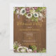 O elegante país rústico tradicional convite de festas de outono floral tradicional com natas de marfim e flores roxas poeirentas com folhas verdes contra um fundo de madeira marrom-claro com cordas de luzes cintilantes e guião dourado. +++++++++++++++ Fácil de personalizar com seus detalhes! ++++++++++++++++ Adequado para o verão, inverno ou outono serem aniversários ou festas de fazendas no quintal ou festas de celebração.