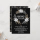 Este cartão de convite de festas de brunch floral é perfeito para um evento de feriado bonito. A design apresenta uma coroa branca e bronca de flor de poinsettia e um pequeno coração sobre fundo preto.