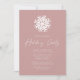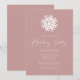 Convites modernos para festa de Natal com um floco de neve branco no topo do design e um fundo festivo rosa poeirento. "Festa de Natal" é exibido em uma escrita manuscrita branca. Personalize os convites de festa de Natal com floco de neve com os detalhes da sua festa.