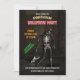 O convite do Festa de Halloween, feito por Spooktacular, com um homem vestido de roupa esquelética e maquiagem, puxando uma boneca vestida da mesma maneira. Fatos encorajados. As linhas de dia, data, hora, RSVP e endereço podem ser personalizadas por você.