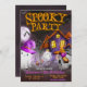Spooky Season está chegando, comemore o primeiro aniversario com este convite único. A mansão assombrada do Spooky é compatível com o fundo grunge, morcegos voadores e fantasmas bonitinhos para capturar a época mais assustadora do ano!