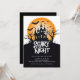 Este convite assombroso apresenta um design preto e branco com uma casa assombrada, morcegos voadores, e a noite assustadora que se diz. É a maneira perfeita de adicionar um toque de fantasia do Dia das Bruxas à sua festa e deixar seus convidados saberem que eles estão dentro por um período assustadoramente bom.