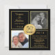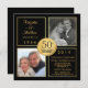 Crie seus próprios convites divertidos e fabulosos personalizados para a festa surpresa de aniversário de 50 anos de casamento -- dois (2) modelos de fotos emolduradas "então e agora" -- com um belo emblema cintilante com acabamento metálico em tom dourado. Personalize o nome, data e detalhes para a celebração do seu aniversário de casamento. **NOTA: Tamanho para cartões de convite QUADRADOS. Outros tamanhos e estilos disponíveis para aniversário de 50 anos, aniversário e outras celebrações de marcos felizes.