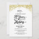 É uma festa surpresa que vem sendo preparada há 50 anos para o casal que comemora seu aniversário de casamento de 50 anos! O design do título integra o ano de casamento do casal. Confetes dourados falsos bordam a parte superior do convite. ASSISTÊNCIA: Para obter ajuda com a modificação do design ou personalização, alteração de cor, redimensionamento, transferência do design para outro produto ou se você gostaria de itens coordenados, entre em contato com o designer ANTES DE COMPRAR através da guia de MENSAGEM do Zazzle Chat ou envie um e-mail para makeitaboutyoustore@gmail.com.