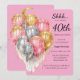 Celebre a grande revelação com este elegante convite de festa de aniversário Shhh… Surprise! com belos balões em aquarela rosa, dourado e prata com pingos de glitter cintilante. Perfeito para planejar uma surpresa elegante para adultos, adolescentes ou aniversários marcantes. Este design moderno e festivo define o tom para uma festa inesquecível, mantendo o segredo seguro até o grande momento. Ideal para aniversários de mulheres, festas luxuosas e celebrações glamorosas.