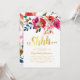 Convites de festa surpresa elegantes com um fundo branco clássico, exibição floral em aquarela, um título tipográfico em folha de ouro falso elegante e um modelo de celebração moderno.