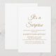 Prepare o cenário para uma celebração surpresa inesquecível com este convite elegante e atemporal. Com um design minimalista e tipografia romântica e caprichosa em foil de ouro falso, é perfeito para aniversários, aposentadorias ou qualquer evento surpresa especial. Por favor, note: Este design usa gráficos de alta qualidade para criar a aparência de foil de ouro e não contém foil real.