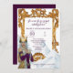 Uma bela ilustração de uma princesa ou rainha numa clareira na neve com montanhas cobertas de neve; Flocos de neve de queda suave e uma estrutura de ouro opulente, de aparência real, ao fundo. Ela tem cabelos longos e dolorosos e está vestindo uma verdadeira lapela escura roxa e um vestido de bola de ouro falso com uma coroa de ouro. A parte traseira tem modelos para adicionar informações adicionais sem custo extra.
