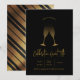 Convite de celebração elegante preto e dourado com dois copos de champanhe brilhantes tilintando juntos. O design combina um fundo preto elegante com texto e acentos dourados cintilantes, criando uma atmosfera luxuosa e festiva perfeita para eventos sofisticados, festas ou ocasiões especiais.