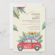 Um convite de aquarela com um carro vermelho com duas malas no teto. Folhagens tropicais acentuam o fundo. (Design por Freepik.com). O cartão é fácil de personalizar com sua redação, fonte e cor da fonte. Não é exatamente o que você está procurando? Todos os nossos produtos podem ser personalizados para atender às suas necessidades sem custo adicional. Basta entrar em contato conosco em askcottonlamb@gmail.com. Produtos coordenados disponíveis a seu pedido sem custo adicional.