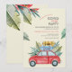 Um convite de aquarela com um carro vermelho com duas malas no teto. Folhagens tropicais acentuam o fundo. (Design por Freepik.com). O cartão é fácil de personalizar com sua redação, fonte e cor da fonte. Não é exatamente o que você está procurando? Todos os nossos produtos podem ser personalizados para atender às suas necessidades sem custo adicional. Basta entrar em contato conosco em askcottonlamb@gmail.com. Produtos coordenados disponíveis a seu pedido sem custo adicional.