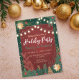 Coloque a palco para uma celebração festiva com este charmoso convite para festas de férias! Apresentando um fundo vermelho quente adornado com uma folhagem verde-luxuosa, luzes cintilantes, e estrelas de ouro elegantes, este design irradia alegria de férias. Os delicados sotaques das árvores de Natal e as luzes das cordas criam uma vibração acolhedora e acolhedora, perfeita para uma noite de alegria e alegria. Totalmente personalizável, este convite permite personalizar todos os detalhes do evento, fazer-o ideal para qualquer reunião de feriados.