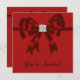 Modelo de convite de festa multiuso com laço vermelho. O design deste modelo funciona bem como um convite para uma festa de aniversário, coquetel, festa de feriado, evento corporativo, evento de gala, festa de aposentadoria, festa de formatura e qualquer outra ocasião especial. Personalize com sua escolha de estilo de fonte e cor da fonte, e cor de fundo do verso. Peças coordenadas disponíveis mediante solicitação por e-mail.