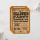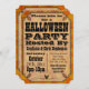 Excelente de convite clássico e assustador para festas de fantasia com cantos recortados e convite de festas de efeito poster antigo. O partido temático Grunge rustic e vintage do país ocidental convidam com raios laranja e amarelos curados de fundo de moda com elementos decorativos temáticos antigos, incluindo galhos de crânio e espinho.