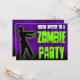 Convite de festas de fantasia Zombie... Uma silhueta verde-verde-caminhoneira em um fundo roxo e preto... faça uma festa temática de zumbi para adultos, crianças ou qualquer um que vista uma fantasia assustadora.