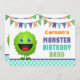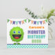 Convites de festas da festança do aniversário do monstro para meninos. Costume bonito o aniversário personalizado convida com um feliz bonito, sorrindo, verde, monstro macio, amigável, pequeno; estamenha colorida e bolinhas azuis. Um design moderno colorido com um olhar retro do carnaval do vintage groovy. Este o divertimento, funky, partido do monstro do menino convida para os partidos dos miúdos/crianças é decorado/imprimido em ambos os lados/dois lados/imprimir tomado partido dobro. Pode ser usado para todo o aniversário da idade para o partido de uma criança: - ø, ò, ó, 4o, 5o, 6o, 7o, 8o, 9o, 10o, 11o. O texto da festança do aniversário do monstro é fixo mas todo texto restante é personalisable/personalizable. Se você precisa algum auxílio que personaliza seu produto me contacta por favor através de minha loja e eu estarei feliz ajudar. NOTE POR FAVOR: - Todos os convites em Zazzle têm imagens impressas do plano.