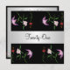 Convite Aniversário Trim Branca Prateada a Preto com Flores Rosa, Vermelha e Roxo. Personalizar para qualquer evento ou aniversário.