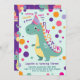 Um desenho animado de dinossauro para a festa de aniversário de seu filho está aqui para dizer a você para estômago, chomp e rugido e festas como um dinossauro! Bonita com bolinhas modernas, cor-de-rosa, laranja e roxa!