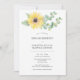 Estes convites de festa de noivado apresentam uma girassol de cor d'água e folhas de eucalipto em tons de amarelo e verde. Use os campos modelo para adicionar seus detalhes personalizados. Solicite cartões impressos on-line ou convites imprimíveis. Uma escolha elegante para comemorações com temas florais e jardins. Para ver mais designs como esta, visite www.zazzle.com/dotellabelle Arte a aquarela exclusiva e design por Victoria Grigaliunas do Do Tell A Belle.