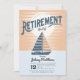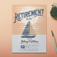 Põe a vela na reforma com este convite! Contra um pano de fundo do pôr do sol em laranja e tons azuis antigos, um veleiro gira através de águas tranquilas, simbolizando a jornada para um novo capítulo de relaxamento e aventura. Convide seus convidados para embarcar nesta comemoração inesquecível de sua aposentadoria!