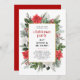 Junte-se a nós para uma festa de Natal festiva! Nosso convite maravilhosamente desenhado mostra um quadro floral com tema natalício enfeitado com flores de poinsettia vermelha e branca e vergreens. Personalize o convite com o seu próprio texto negro e faça planos para comer, beber e ser feliz conosco.