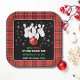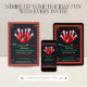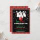 This festive holiday bowling party invitation features bowling pins with red glitter and a red bowling ball with snowflakes pattern on a cheerful red plaid background the perfect design to spread seasonal fun and party cheer.