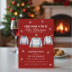 Get ready to embrace the festive spirit with this charming Christmas party invitation! Featuring a whimsical watercolor illustration of cozy, holiday-themed sweaters hanging on a clothesline, this design captures the fun and warmth of the season. The sweaters are playfully labeled 'Chilled to Perfection,' 'I'm Toasty,' and 'Frosty AF,' adding a touch of humor and personality. This invitation is perfect for anyone looking to host a casual and fun holiday gathering. Let your guests know it's time to 'Come Hang With Us This Christmas' and don't forget their sweaters for a memorable sweater party! The deep teal background is adorned with delicate snowflakes, creating an enchanting winter wonderland atmosphere.