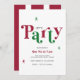 A whimsical holiday party invitation that is simple and festive with attractive typography spelling out Party in bold red and green with a retro vibe along with a few hand drawn star embellishments to add energy. The text template is easy to personalize with your details. The back of the invitation has a bold striped pattern in matching red.