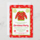 Spread holiday cheer with this fun and colorful Ugly Christmas Sweater Party Invitation, featuring a bold red background adorned with white snowflakes, candy canes, and peppermint swirls. The center showcases a bright green and red Christmas sweater decorated with ornaments, stars, and festive patterns — perfect for setting a playful and cheerful tone for your holiday event!