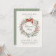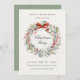 A festive watercolor wreath adorned with red berries and a bow accent this lovely Christmas party invitation with classic style. Elegant serif typeface blends with a traditional script with a simple text layout that is easy to personalize with your details. The back of the invitation has a pinstripe pattern in matching green and beige. This invitation may be ordered in both printed and instant download digital formats for your convenience.