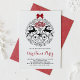 Convide convidados para um pouco de alegria de férias com este convite de festas de Natal divertido e festivo. Apresenta um ornamento branco e ornamentado de flores de férias, flocos de neve e renas. Personalize adicionando nomes, data, hora e outros detalhes. Este convite de festas preto de Natal moderno está disponível em outros estoques de cartolina.