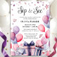 Balão Azul Festivo, Rosa, Bem-vindo Bebê SIP E VEJA Cartão de Convite. Celebre a chegada do seu bebê precioso com este cartão de convite festivo, chico e bonito com balões de aquarela coloridos, estrelas e corações festivos que brilham ouro, conjuntos de presentes bonito embrulhados com fitas e e-mails decorados florais. Todos os textos estão pré-organizados para que você personalize fácil e rapidamente com os detalhes do seu chá de fraldas.