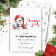 Crie Convites de festas de Natal elegantes com um pinguim giro num chapéu vermelho de Papai Noel e um cachecol com um pequeno boneco de neve cercado por verde festivo e ornamentos. A parte de trás é decorada com flocos de neve azuis sobre um fundo branco. O modelo facilita a personalização do texto com seu nome, data e hora, endereço, RSVP e código de vestimenta da festa. Se você quiser personalizar mais, você pode fazer isso usando a ferramenta design Zazzle.