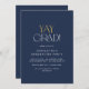 Este convite de festa de formatura marinho de ouro moderno e rápido é perfeito para uma simples festa de formando. O design apresenta uma elegante tipografia de vassoura com um toque de estilo sofisticado em azul-marinho clássico e ouro amarelo.
