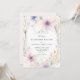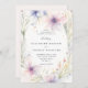 Flores silvestres deliciosas e verde-luxuoso, pintados em aquarelas moles com tons de roxo, lavanda, rosa e verde, entrelaçados graciosamente contra um fundo branco de marfim para criar um quadro floral elegante para este convite para o casamento. A design é uma mistura eterno de sofisticação clássica e o charme lúdico de flores silvestres, perfeito para o romântico moderno. Ideal para um casamento de primavera ou verão, este convite combina tanto com a noiva elegante de vô quanto com aqueles que planejam uma festa de jardim, celebração de quintal ou um evento formal nos jardins de um château. Uma bela escolha para as noivas que procuram um toque do capricho da natureza com elegância refinada.
