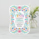 Mariachi, margaritas e memórias! Atirem a festa com este design de festa popular mexicano. O texto colorido e a trabalho de arte (desenhada à mão pela própria Lively Scribe) dão a esta design uma vibração peculiar, mas elegante. Perfeito para o latinx na sua vida. Ou uma festa que é convenientemente próxima de Cinco de Mayo ou Dia de los Muertos. Solicite seus convites impressos e suprimentos de festas ou faça o download de seus convites digitais agora por um dia que eles nunca esquecerão!