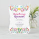 Convite de festa vibrante e alegre com tipografia de estilo manuscrito em tendência e gráficos de flores, pássaros e cactos em arte popular aquarela. Edite o texto para atender às suas necessidades exatas. Para itens correspondentes, edições personalizadas, entre em contato com a designer LeahG.