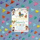 Celebre o terceiro aniversário de sua criança com uma vibrante fiesta Três-Esta! Este convite de aniversário é ideal para dar o tom. Personalize-o facilmente com todos os detalhes do seu partido e prepare-se para celebrar!