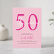 Fifty and Fabulous script minimal blush pink, hot pink white and black modern 50th birthday invitation that you can personalize and send out for your fiftieth birthday party celebration. The words "Fifty and Fabulous" are set using popular script font typography. The text colors can be changed using the edit menu.