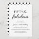 Celebrate your special birthday in style with this Fifty and Fabulous minimal black script modern 50th birthday invitation. Personalizable with your name and fiftieth birthday party celebration details. To the front is an elegant and modern combination of clean typography with popular script font in black and set on a white background - all text colors can be changed to anything you wish using the edit menu. The reverse is finished with a black polka dot pattern - a fresh and fabulous choice for your fiftieth celebration!